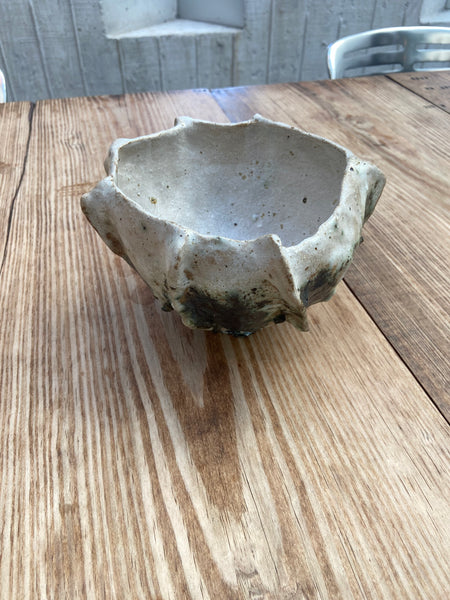 Eve Krahn's work reflects the raw, imperfect beauty of the natural world. She explores the harmony and tension between stoneware, foraged clay, ash from organic plants, and minerals such as basalt, granite, and feldspar. She celebrates the natural imperfections - textures, cracks, and irregularities - allowing them to shape the final piece. Eve uses rocks and natural materials in her work not just for their aesthetic appeal, but also because they provide a way to explore sustainability within her pottery-making journey.