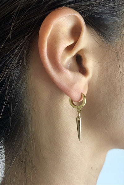 Janesko Jewelry is inspired by travel. The Location Earrings easily travel from place to place. The hinged hoop keeps the earring secure while the small spike drop catches the light as you navigate through the world.