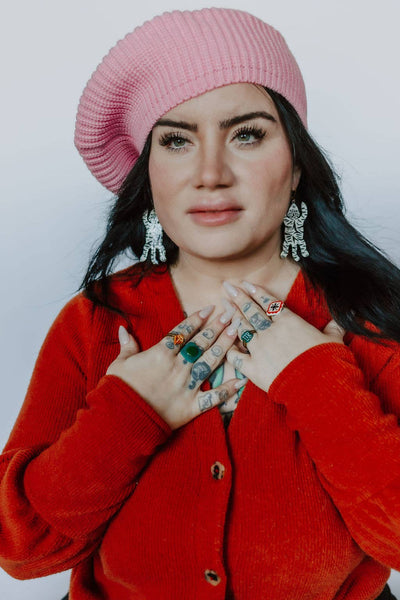 Hand carved and hand painted porcelain statement ring. Band is adjustable size 6-9, available on a thick brass band or a thin gold plated band. Ceramic pieces are made by hand: glazed patterns may vary slightly from photo.