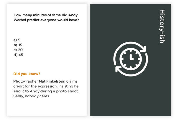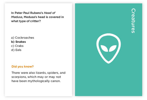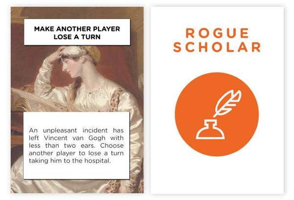 A fun and easy-to-set-up game for ages 14 and up, where players answer trivia questions about art history and collect artwork along the way. Be the first to collect five artworks and prove, officially, that you know your stuff. Players can also use “Rogue Scholar” Cards to help them answer questions, protect their artwork from getting stolen, and sabotage other players. Trivia questions are multiple choice, and the difficulty level varies (ranging, for example, from “What body part did Van Gogh cut off?” to “How many pet chow chows did Georgia O’Keeffe own during her lifetime?”). Funny, and at times playfully irreverent and a little absurd, this game dispels the myth that art and art history are only for stuffy intellectuals.